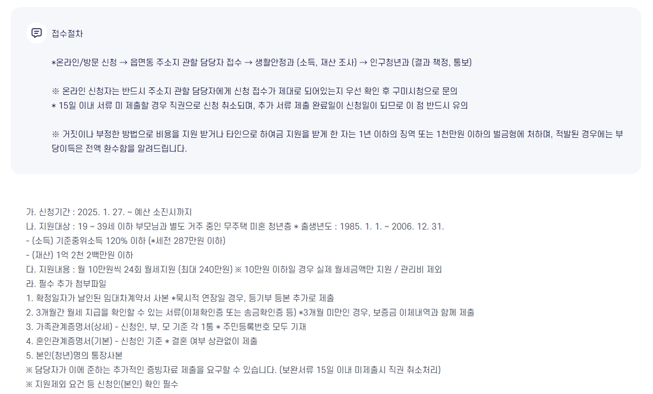 - ❌ 국토부 청년월세 특별지원, 타 지자체 월세지원과 중복 불가
