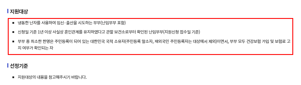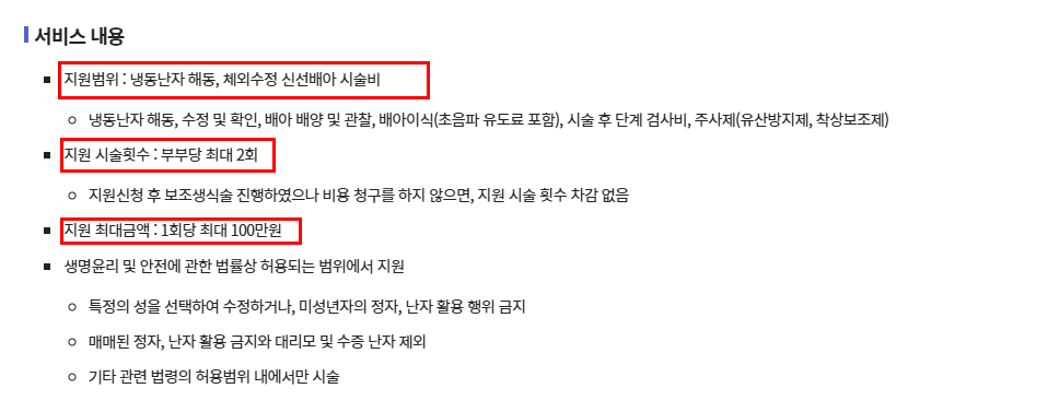 - ‘냉동 난자를 실제로 사용해 시술하는 경우’만 지원됩니다.