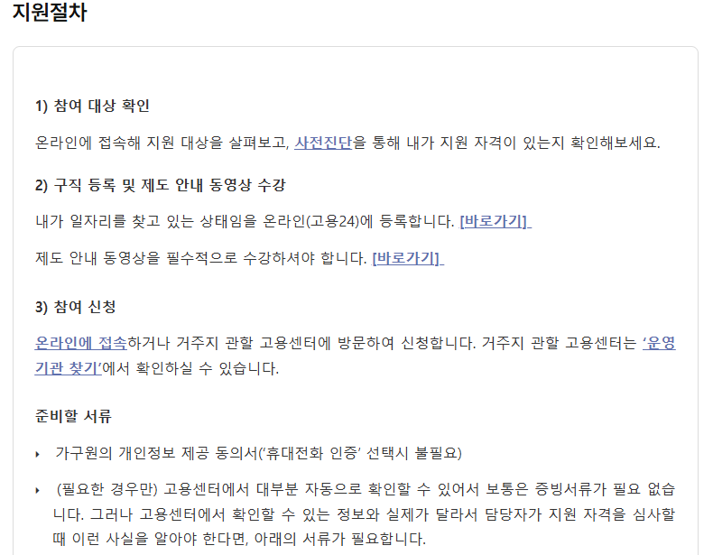 | 신청 | 워크넷 + 고용24 / 고용센터 방문 |